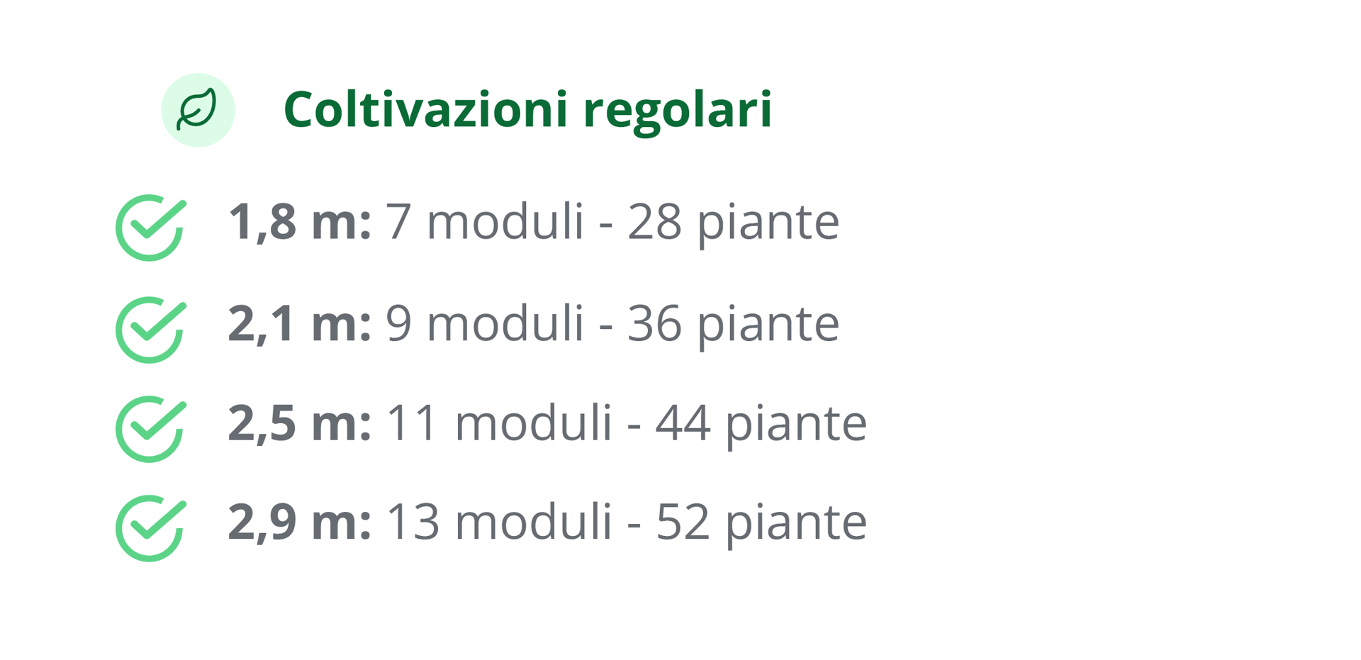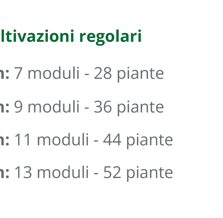 Installazione e avvio guidato – Montaggio in loco, test di funzionamento e training on-site per partire immediatamente con coltivazioni performanti.